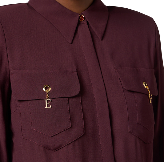 Elisabetta Franchi camicia in georgette con tasche borgogna