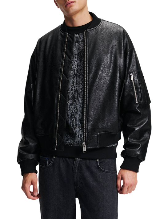 Karl Lagerfeld Jeans giubbino bomber in ecopelle martellata nero