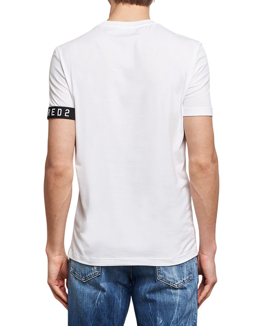 Dsquared2 T-shirt manica corta con banda logata bianco nero