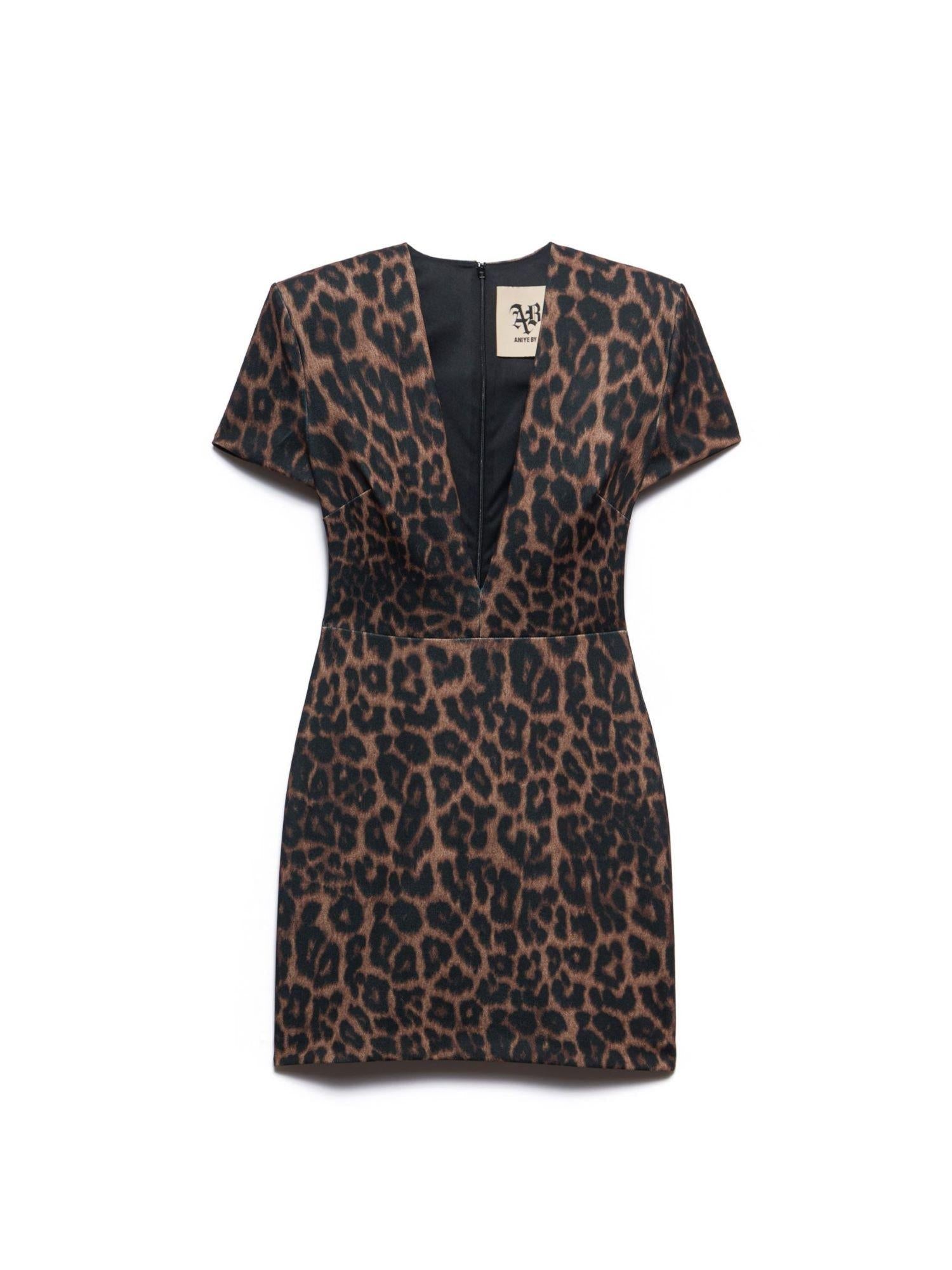 Scopri l'abito corto Jodie in fantasia maculata marrone di Aniye By, un capo che unisce stile e comodità in un'unica creazione. Realizzato in tessuto crepe stretch, questo abito è pensato per abbracciare le forme femminili con eleganza.