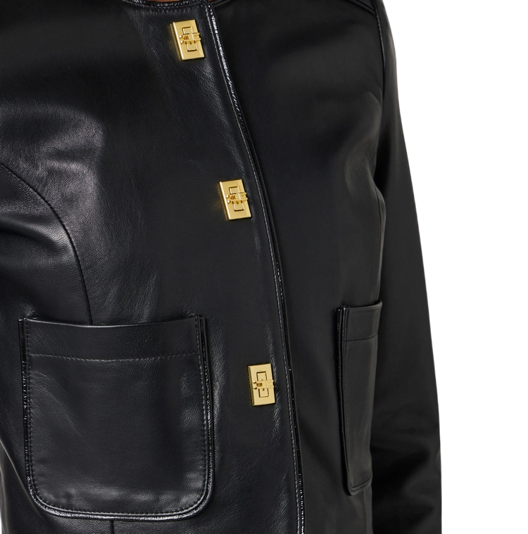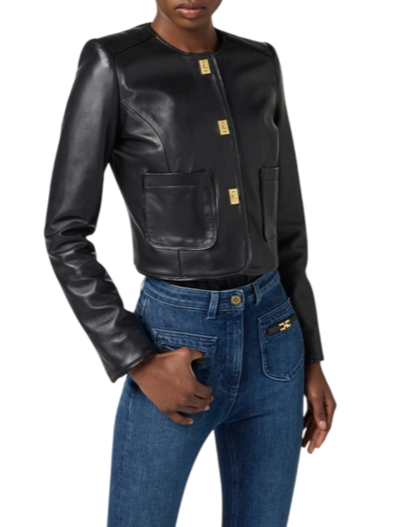 Elisabetta Franchi giubbino in pelle con bottoni gioiello nero