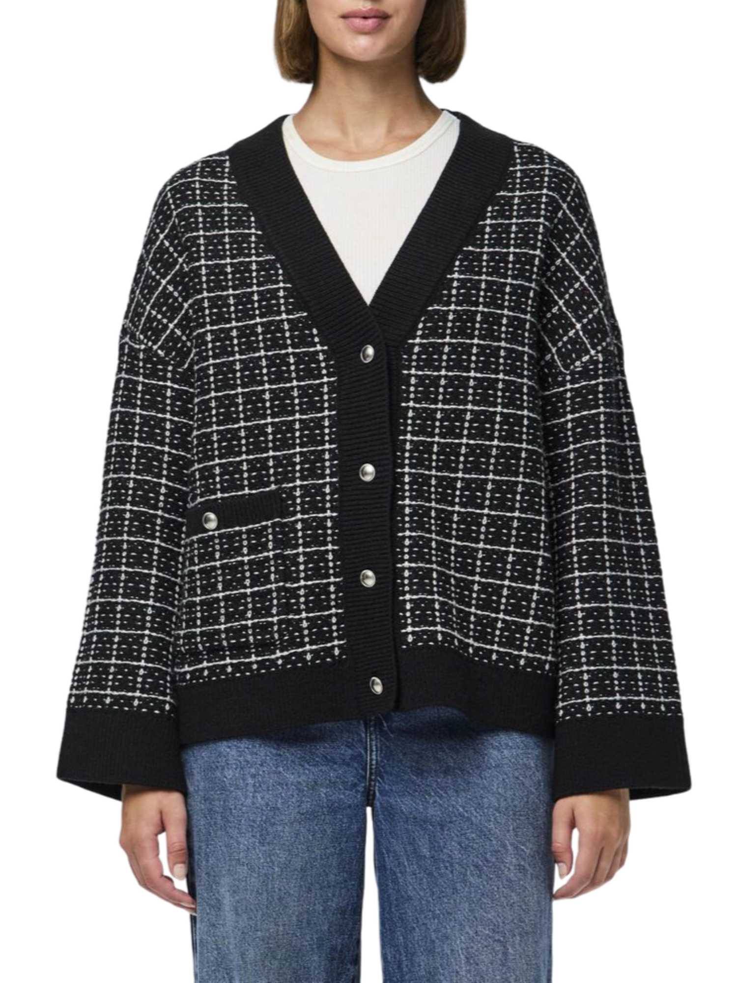 Scoprite l'eleganza senza tempo del cardigan Nilja Nero Bianco di Pieces, un capo perfetto per ogni occasione. Realizzato con una raffinata miscela di materiali - 50% Poliestere, 31% Acrilico, 17% Nylon e 2% Fibra Metallica - questo cardigan offre non solo un aspetto straordinario, ma anche un comfort incomparabile.