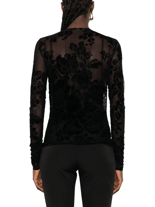 Pinko top Puzzle in tulle floreale flock nero