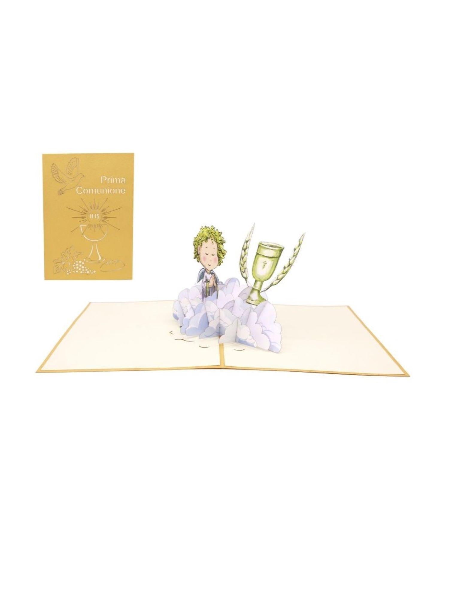 Scoprite il nostro affascinante biglietto di auguri pop up con angelo, dedicato alla Prima Comunione. Questo esclusivo biglietto è realizzato interamente a mano, garantendo un tocco unico e autentico per ogni occasione speciale.