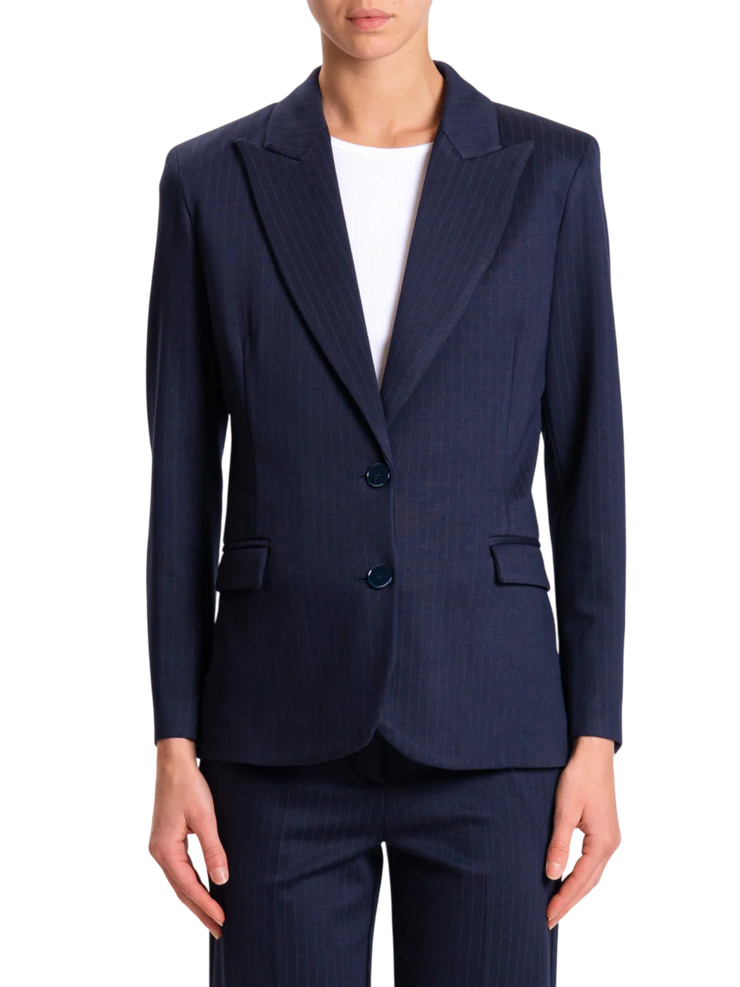 Scegliete la giacca monopetto in fantasia gessata blu di Vicolo e arricchite il vostro stile con un tocco di eleganza e raffinatezza.