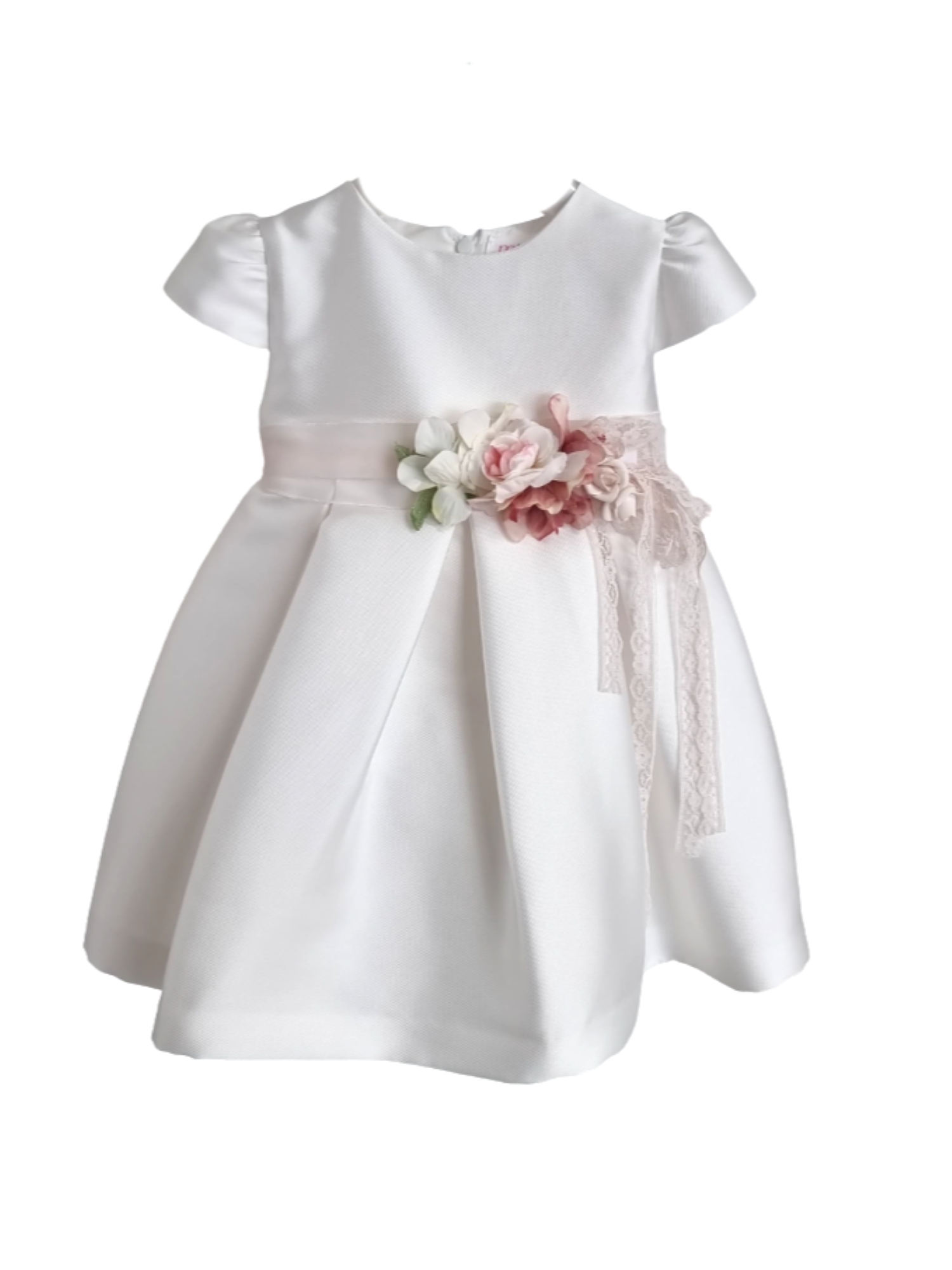Scoprite l'eleganza senza tempo dell'abito da cerimonia per neonata Mimilù, realizzato in pregiato mikado bianco. Questo splendido vestito è progettato per le occasioni speciali, rendendo ogni momento indimenticabile.