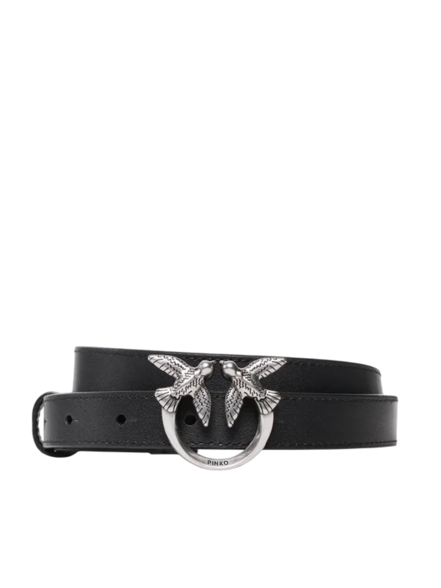 Scoprite l'eleganza senza tempo della cintura da donna Pinko cintura Love Berry h2. Questa cintura, realizzata in pregiata pelle nera, è il complemento perfetto per qualsiasi outfit, sia casual che formale.