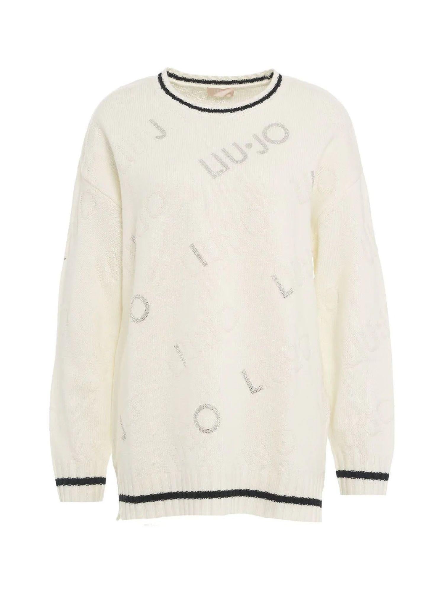 Scoprite l'eleganza senza tempo con la maglia over Liu Jo in misto lana con logo strass panna. Questa maxi maglia da donna è realizzata in un pregiato tessuto a costine, esprimendo un perfetto equilibrio tra comfort e stile.