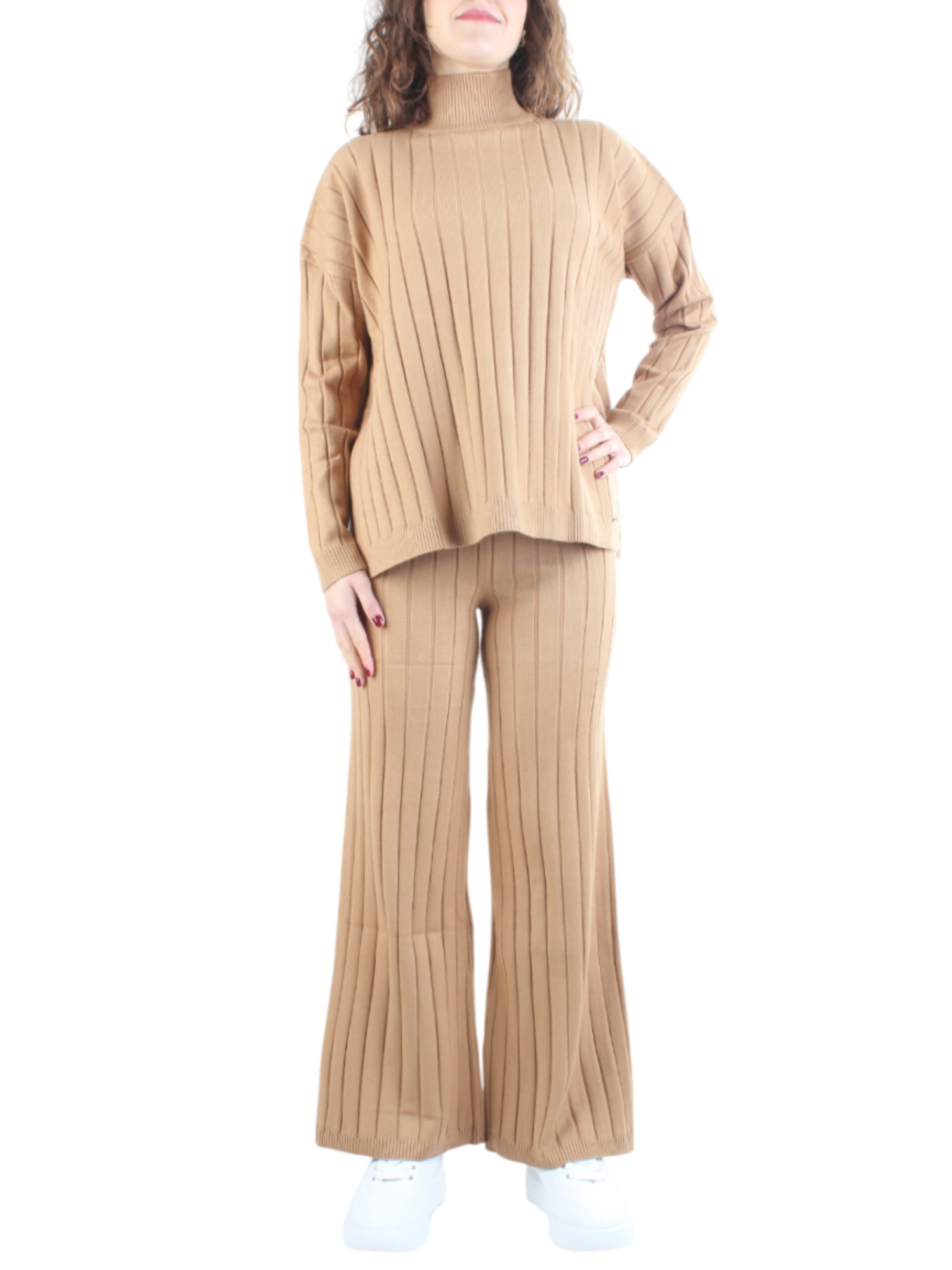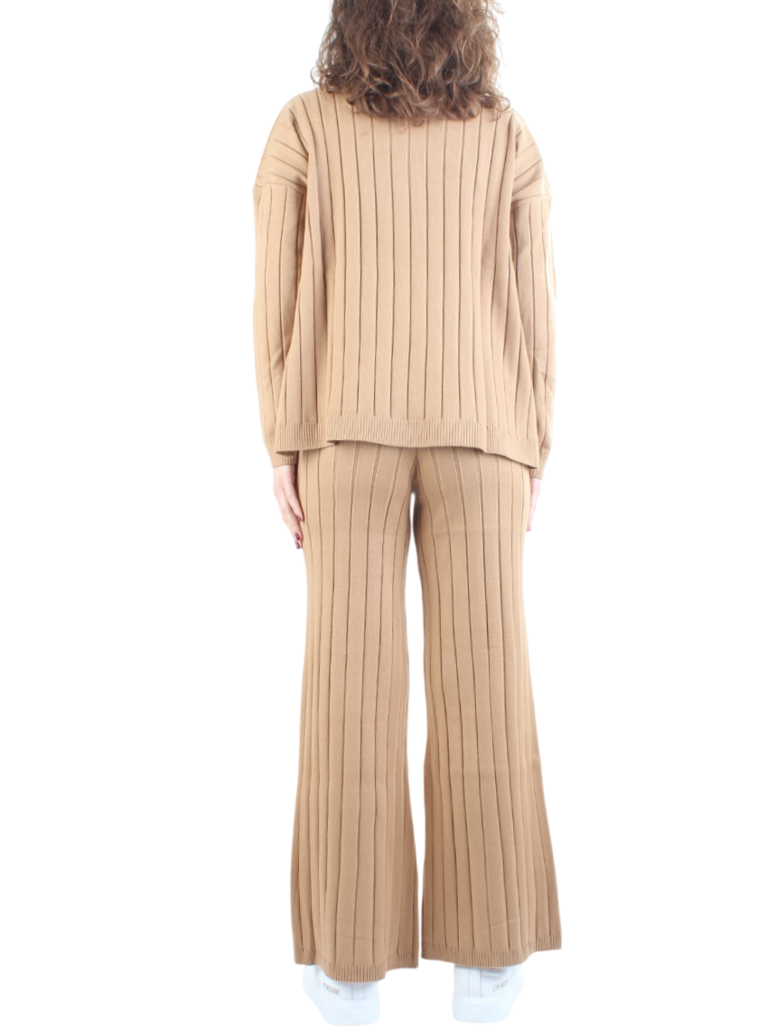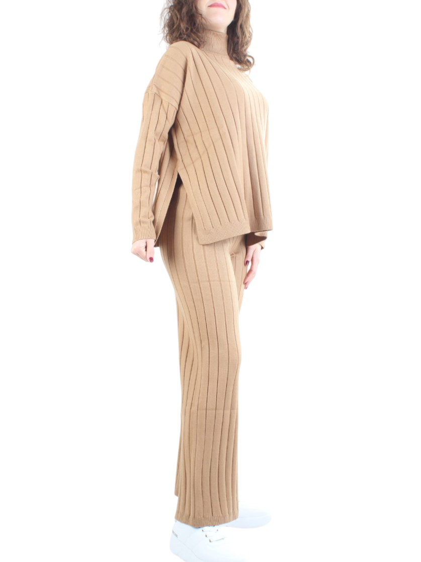White Wise completo in maglia collo alto a coste cammello