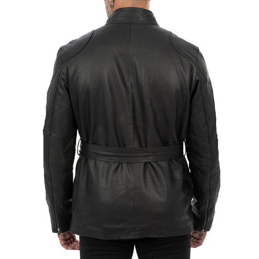 Giaccone Giacca Lungo In Vera Pelle Nera Uomo Slim Con Tasconi e Cintura Vita Rindway
