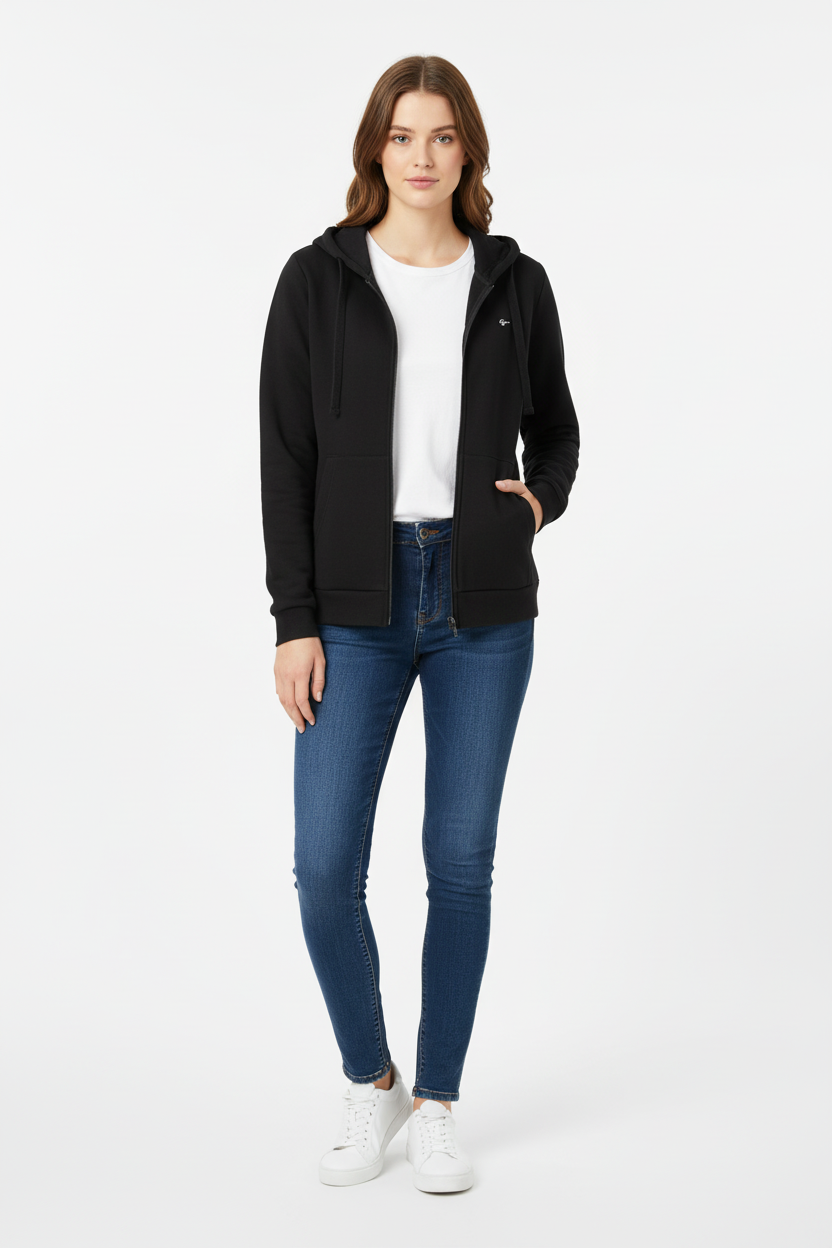 Le due tasche centrali offrono spazio sufficiente per riporre piccoli oggetti, mantenendo le mani al caldo. La chiusura con zip consente una vestibilità regolabile, mentre la stampata e l'applicazione del logo aggiungono un tocco distintivo al design, rendendola un pezzo unico da indossare.