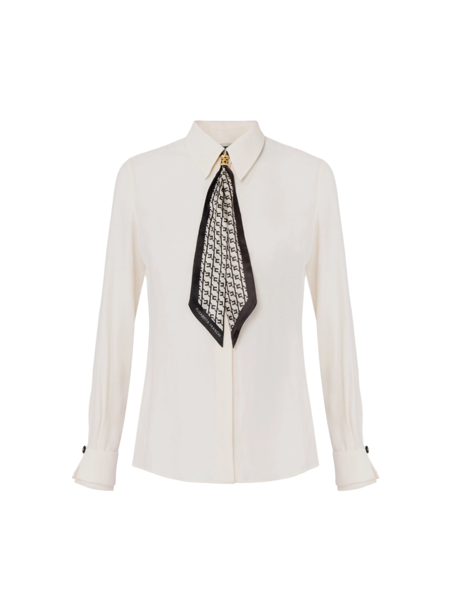 Elisabetta Franchi camicia in georgette con foulard bianco latte