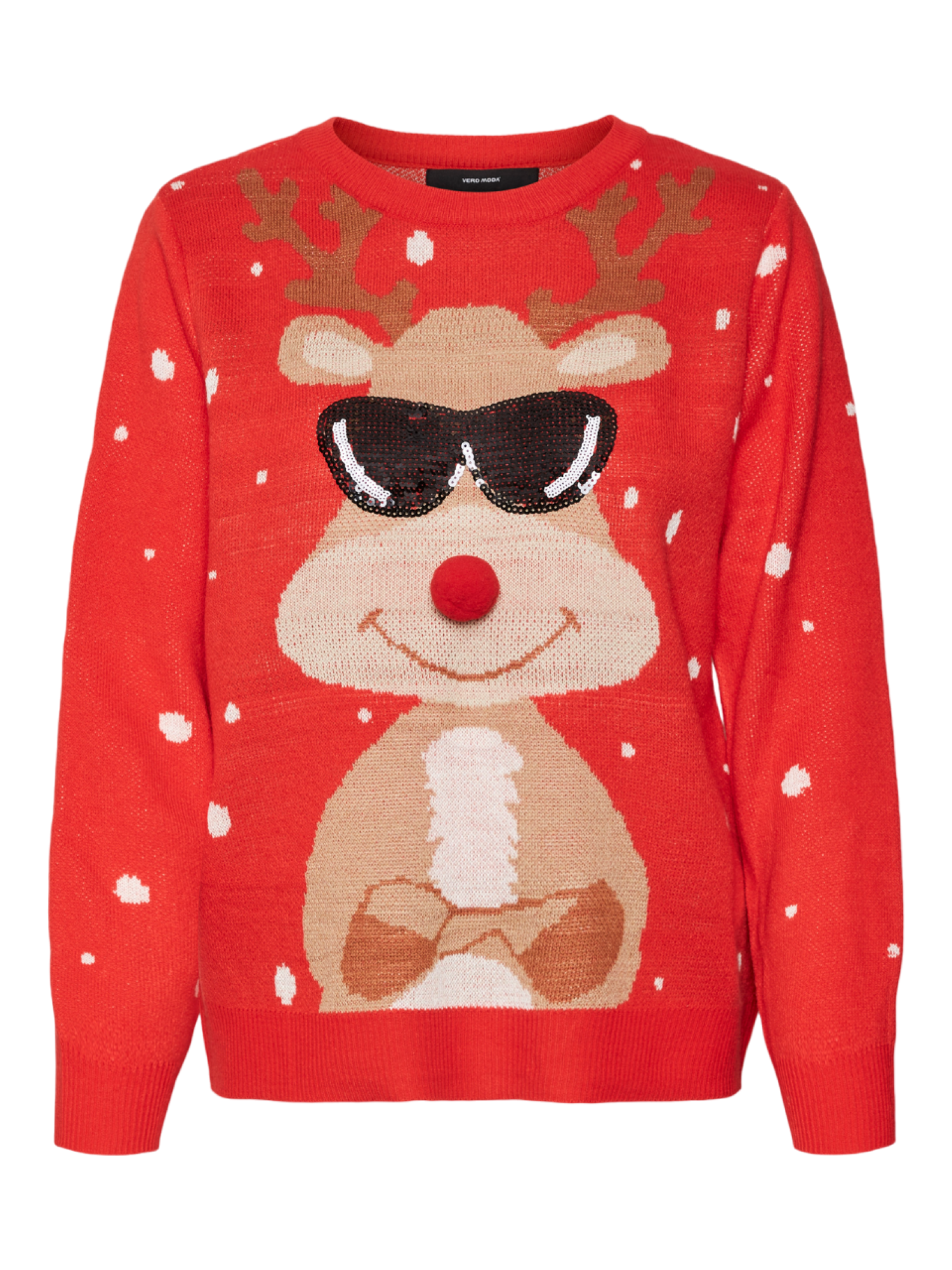 Scoprite l'incanto delle festività con la maglia in fantasia natalizia di Vero Moda, un capo essenziale per il guardaroba invernale. Questa maglia da donna è caratterizzata da un elegante disegno jacquard che rappresenta una graziosa renna sul davanti, perfetta per celebrare lo spirito natalizio con stile e originalità.